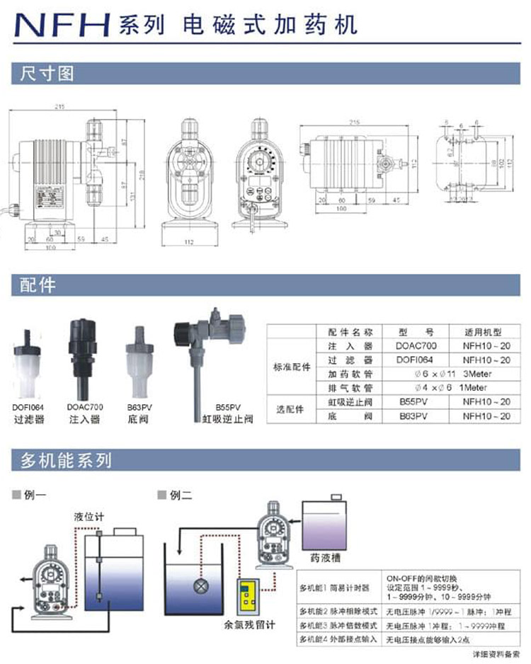 • 產(chǎn)品描述:NIKKISO EIKO日機(jī)裝NFH20系列結(jié)合電子與定量加藥機(jī)之技術(shù),研發(fā)泛用型的電磁式加藥機(jī),液體接觸部以優(yōu)質(zhì)之耐蝕材質(zhì)為標(biāo)準(zhǔn),外型精致,體積小,易安裝。NFH系列高精度、高效率、寬頻泛用電壓,適用地區(qū)廣。
